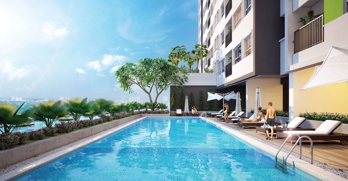 Hồ bơi tràn bờ tại Dự án Căn hộ Aio City Bình Tân